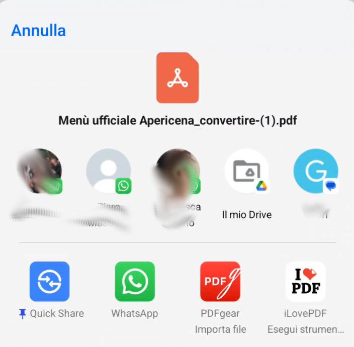 Scegliete WhatsApp o la mail, e condividete il pdf.