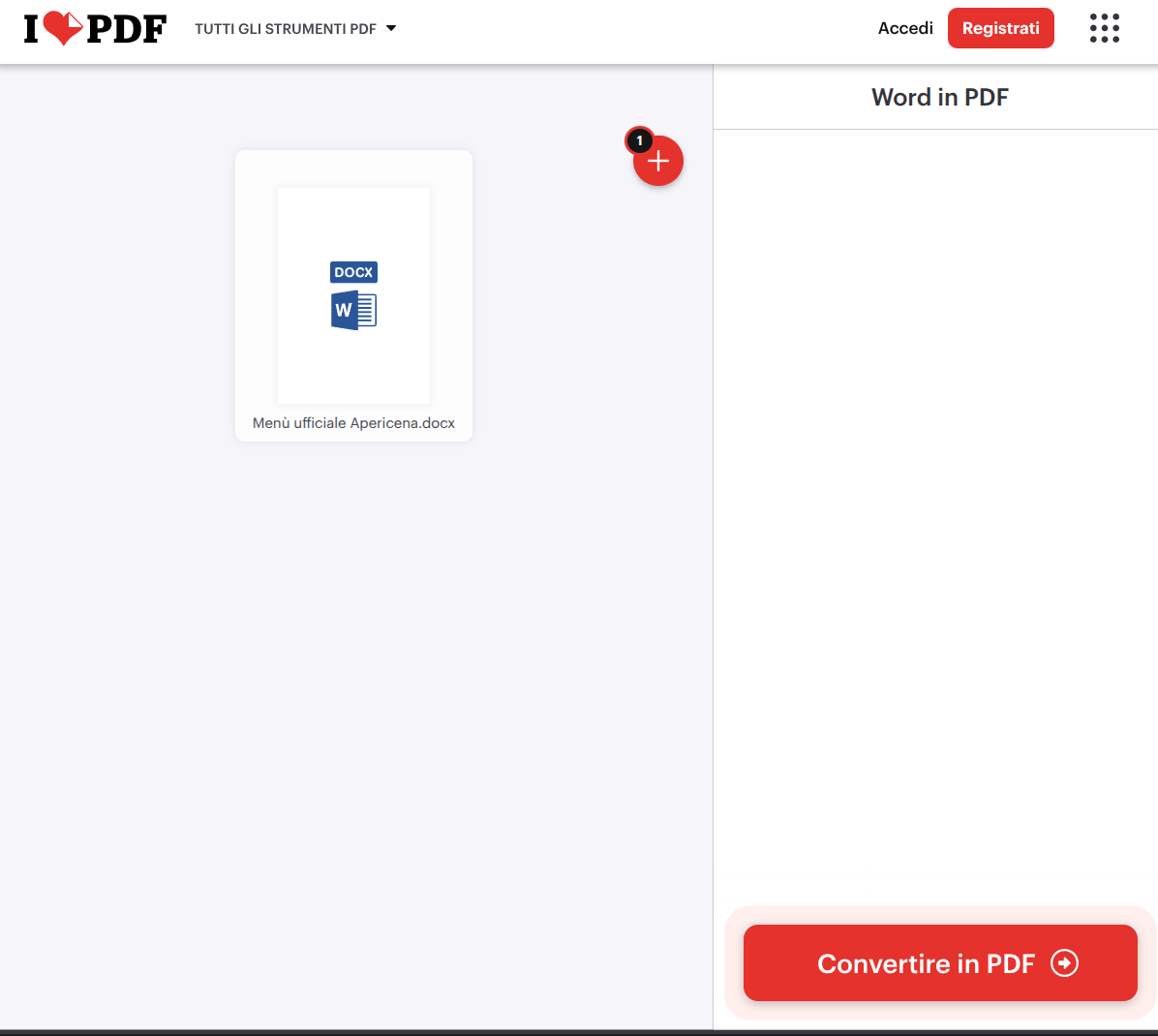 Aprite questa pagina: https://www.ilovepdf.com/it/word_a_pdf