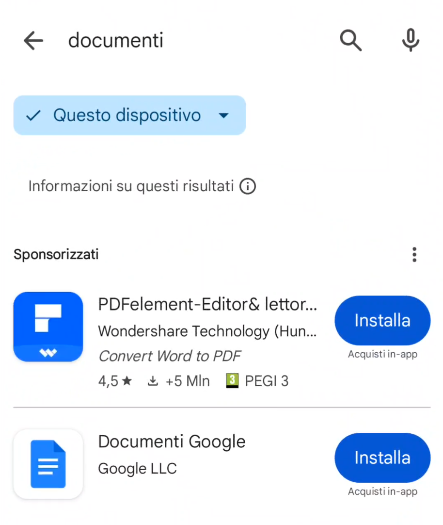 La trovate aprendo Google Play Store e cercando documenti (attenzione, non è detto che sia la prima nella lista, qui è la seconda):