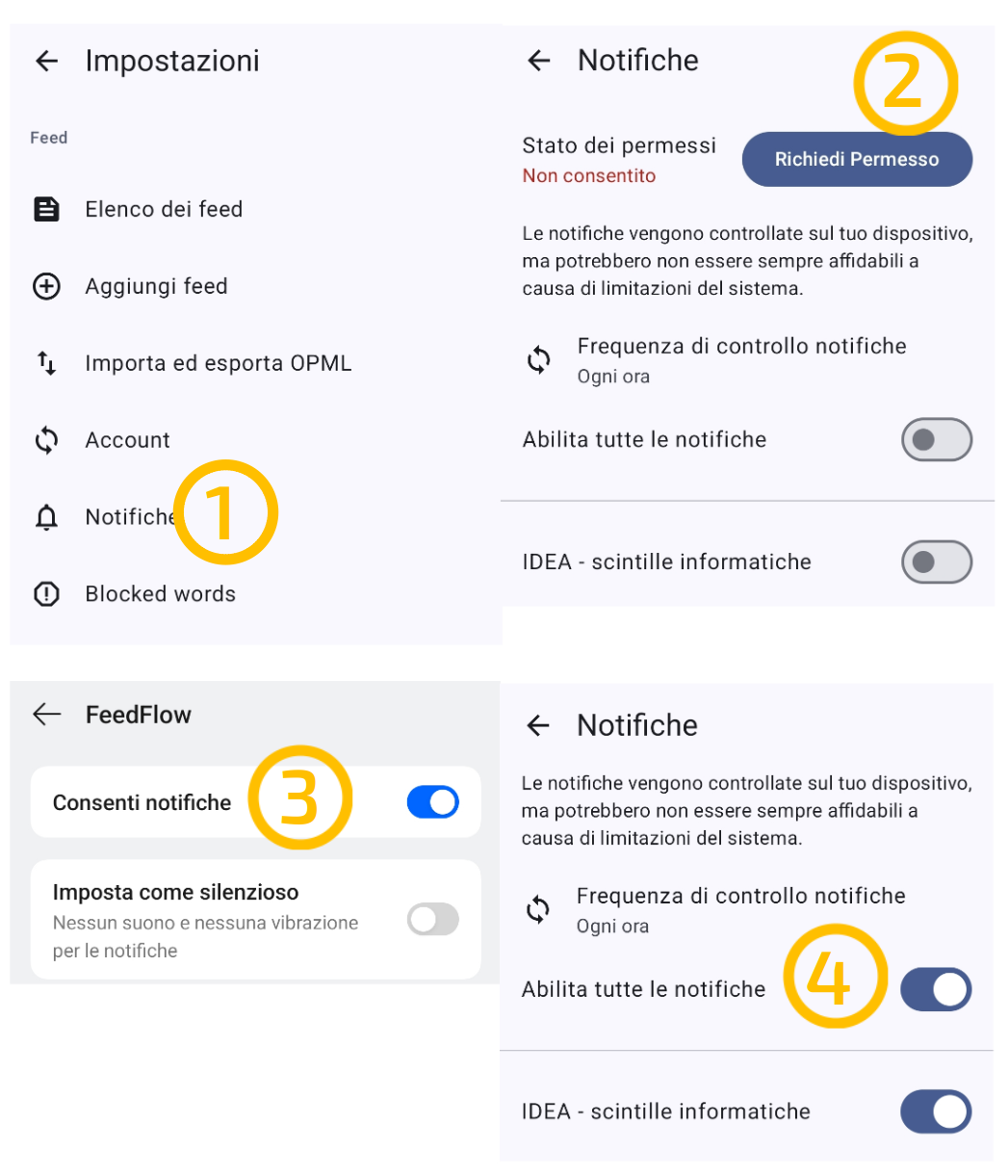 - ti arriva un breve messaggio: Feed IDEA - scintille informatiche aggiunto → Fatto!