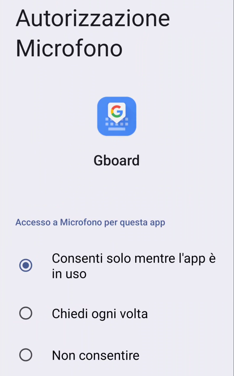 Scegliete Microfono e selezionate “Consenti solo mentre l’App è in uso”: