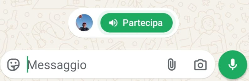 Dal momento in cui attivi la chat vocale, gli altri partecipanti al gruppo vedranno il bottone verde (senza sentire nessuna notifica):