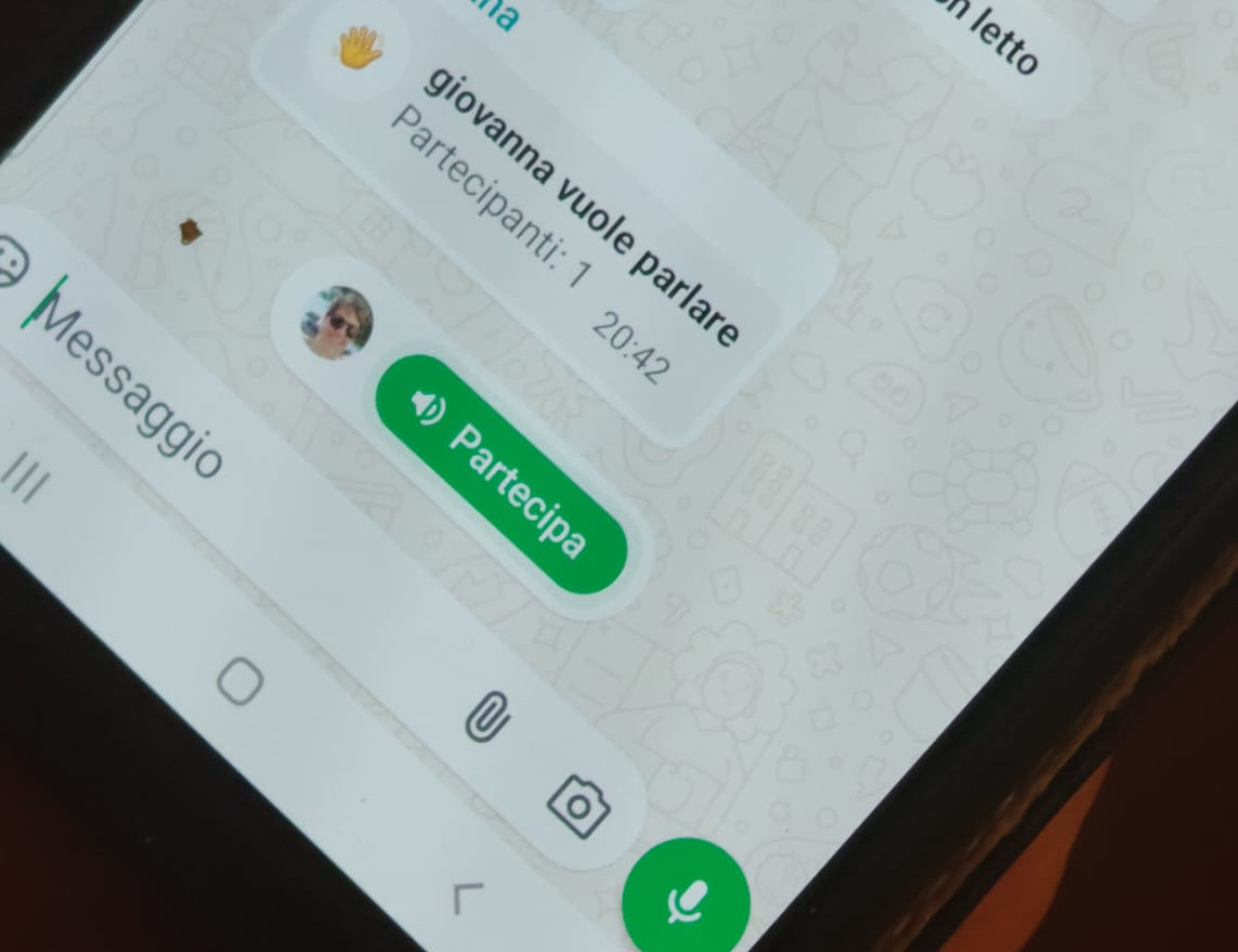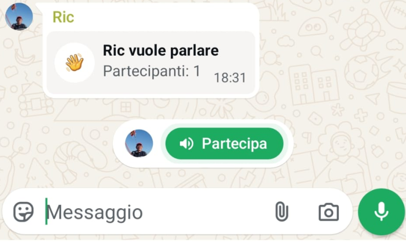 Una chat vocale è diversa da una telefonata di gruppo (che si può attivare nei gruppi piccoli premendo l’icona della la cornetta in alto, accanto all’icona della telecamera).