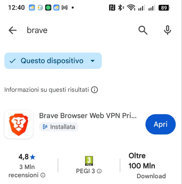 Su Android o iOS cercate Brave nei rispettivi Store.