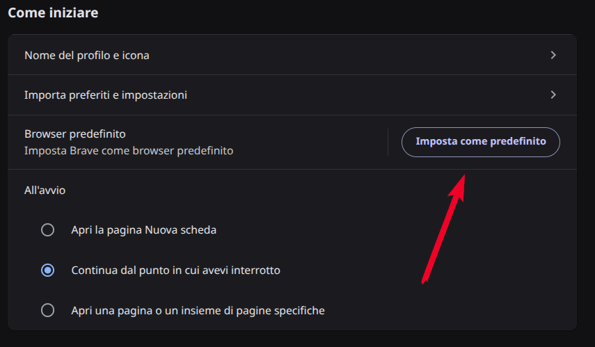Impostare Brave come predefinito su PC