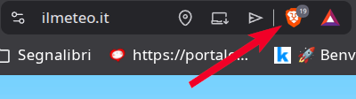 Anche su PC cliccate l’icona di Brave che si trova a destra dell’indirizzo della pagina web: