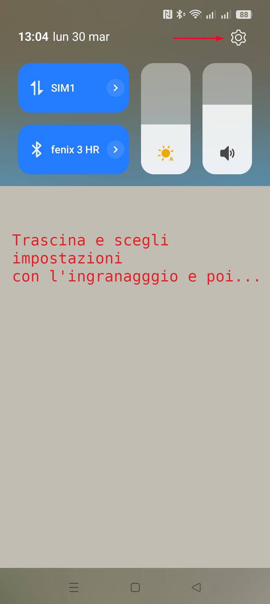 Per fare in modo che si apra Brave quando cliccate su un link sul telefonino, scegliete Impostazioni. Di solito è l’ingranaggio che si vede trascinando dall’alto come qui sotto:
